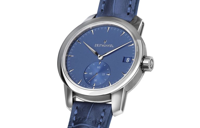 The Zeitwinkel models with decentral display of seconds pick up on the design of classic pocket watches. In a variation of the usual three-hand configuration, the hands for hours and minutes are supplemented by a harmoniously arranged off-center seconds display and a date display at the "3" position.