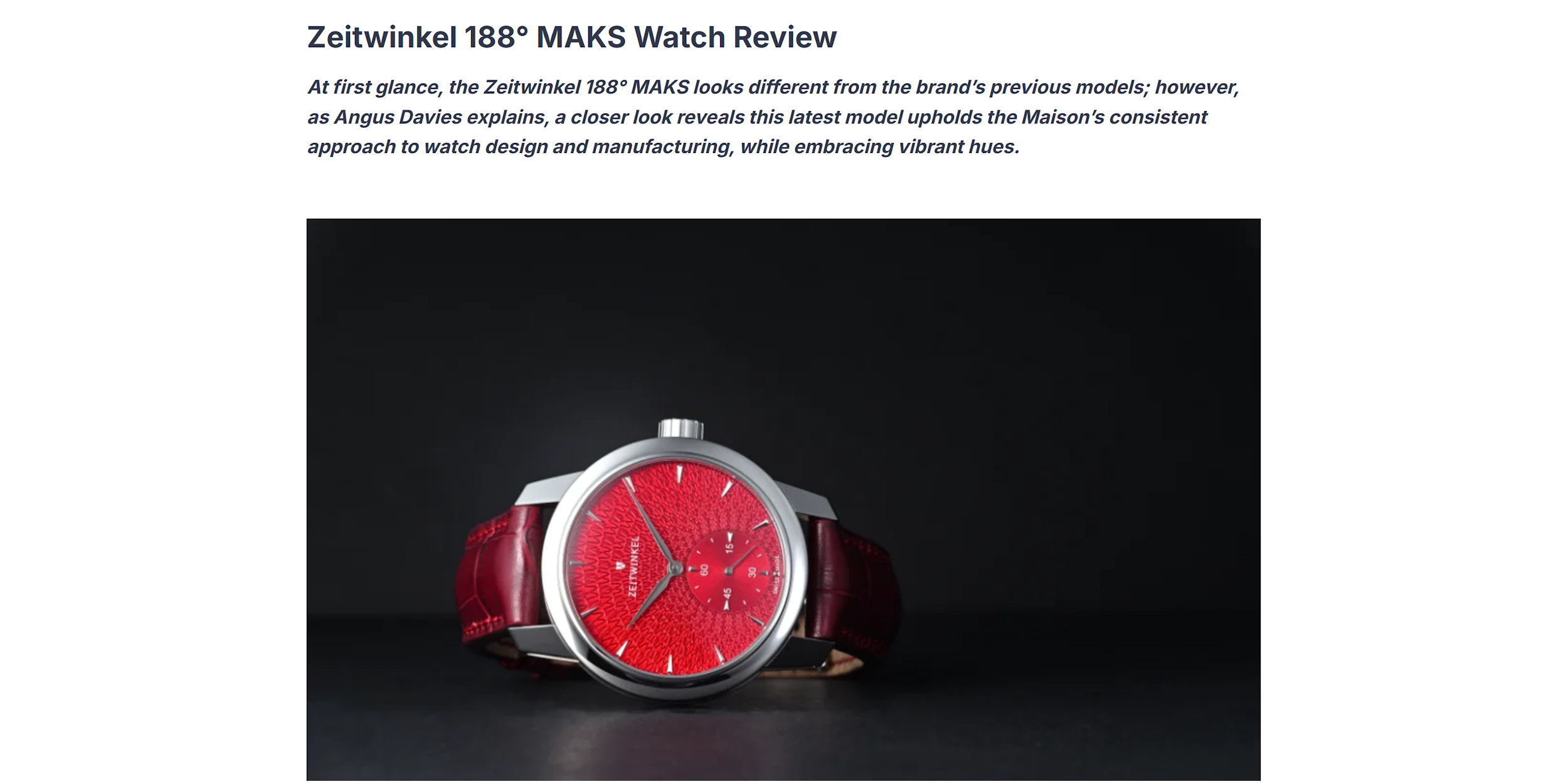 In December of 2023, Angus Davies took a look at our recently introduced model line Zeitwinkel 188° MAKS. Having visited our manufacture in Saint-Imier several times, Angus has a deep understanding of our philosophy and our traditional manufacturing methods.